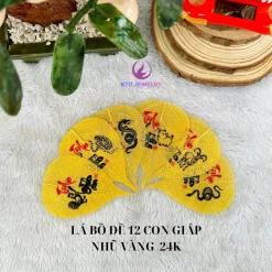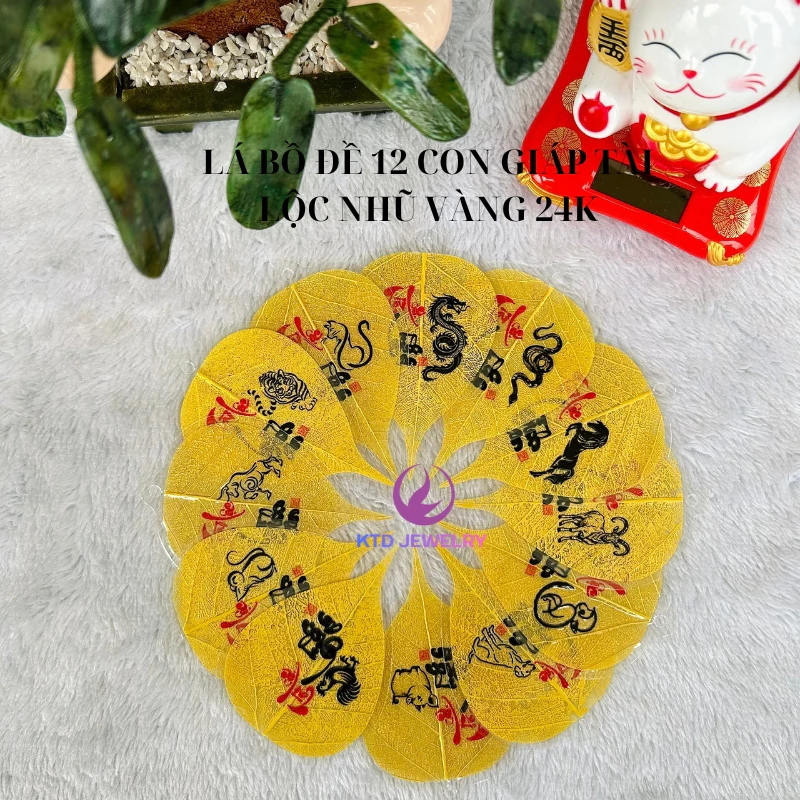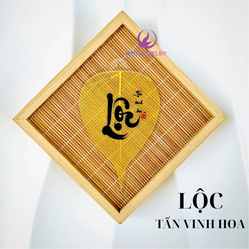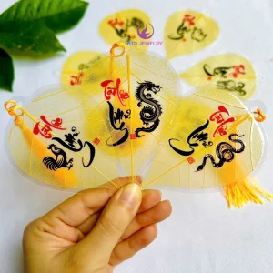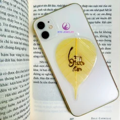 Lá bồ đề ốp điện thoại , treo ô tô, treo Ngày Tết chữ Vàng 24K (Gồm dây treo, tua rua ,bao lì xì)