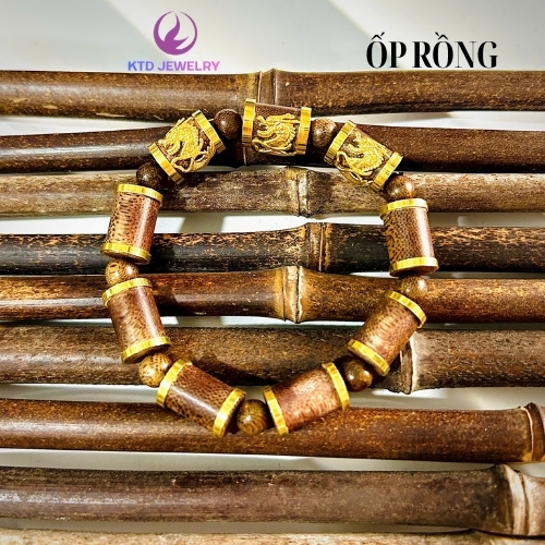 Đốt trúc trầm tốc bọc khoen mạ vàng, charm phúc lộc thọ
