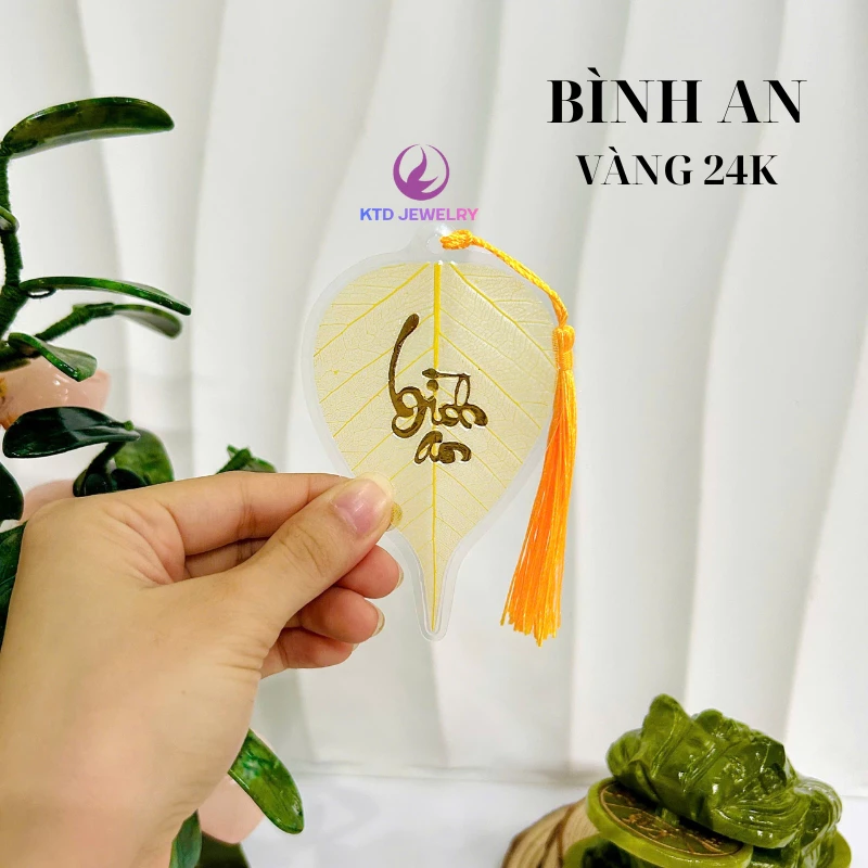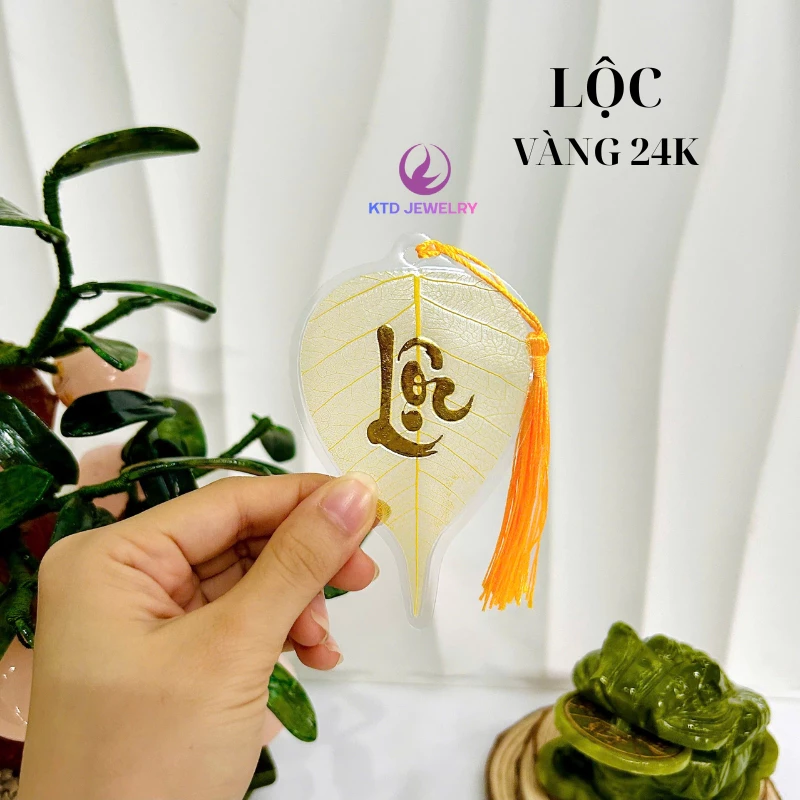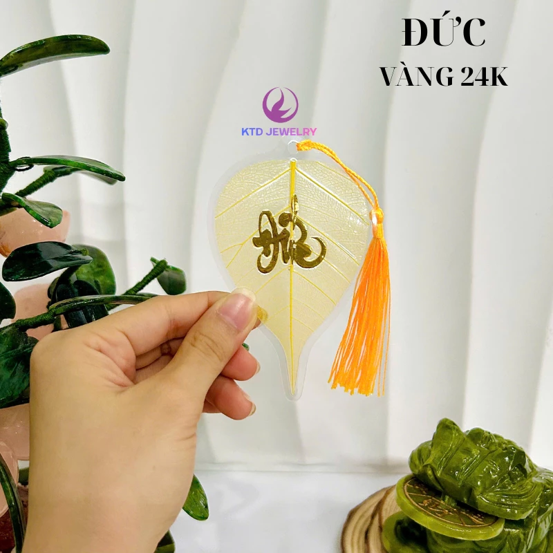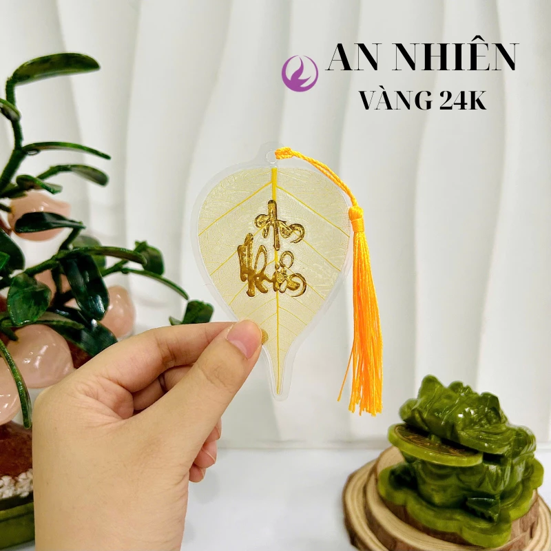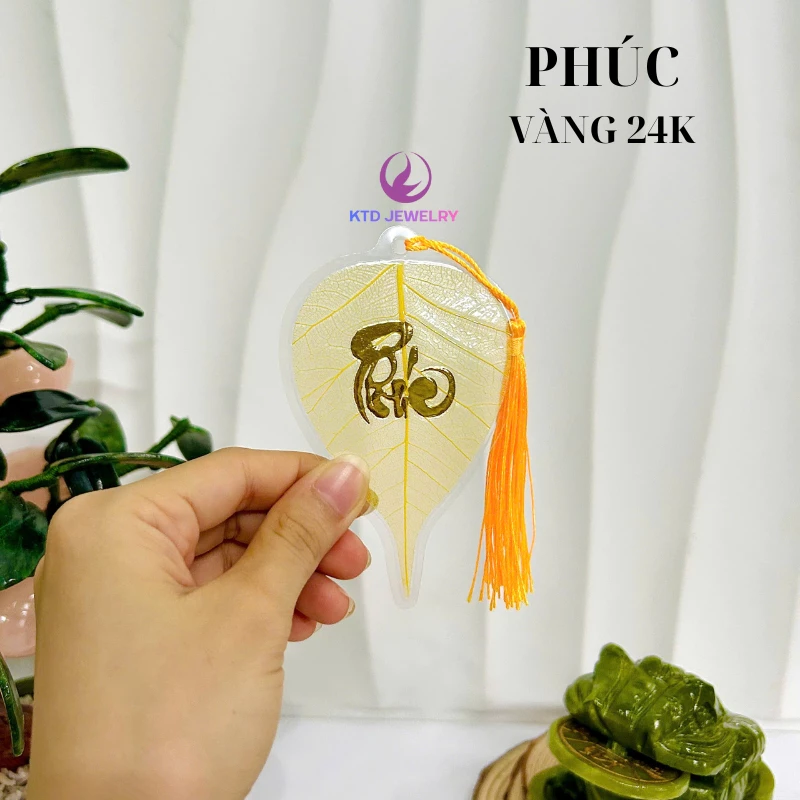 – Màu sắc lá: lá vàng chữ thư pháp 24k